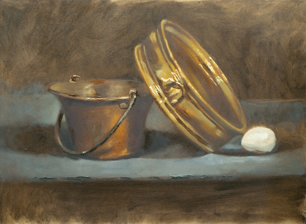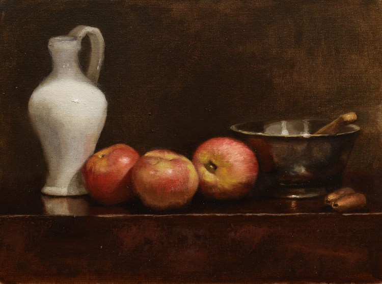 Self Portrait December 2022, Oil on Canvas, 18×24 inchesCharlie Antolin, Portrait of Bob, Oil on Panel, 24×30 inches, 2022Charlie Antolin, Bodegan Still Life After Juan Sanchez Cotan, Oil on Panel, 24×30 inches, 2022Three Apples, Oil on Canvas Panel, 2022Charlie Antolin, Metal Pans With Egg, Oil on Canvas, 2022Charlie Antolin, David Painting, Oil on Canvas Panel, 2022