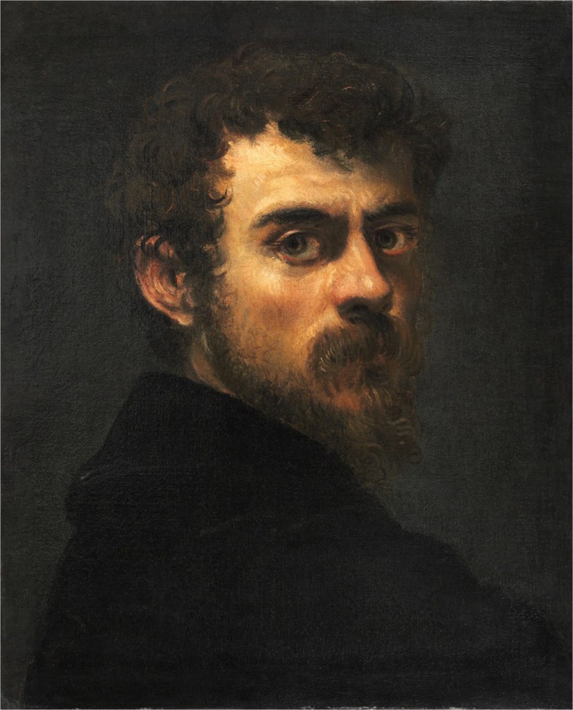 I attached a self portrait by Tintoretto (age 26) to serve as interesting comparison to my own (age 26). By this stage in Tintoretto’s career the boldness of line characteristic of his signature style is already present. His drawing is superior to mine because, while it is not necessarily more detailed, it has a simple elegance. The forms of his eyes and even the curls of his hair are idealized, and rendered with confidence. The gesture he chose of his neck rotated and his scapula translated forward is subtly difficult to execute. I doubt he could hold this position for very long, and certainly not for the entire duration of the painting, whereas the gesture I chose was the position I was in while I was painting. Perhaps it is better to not be locked in to copying exactly what you look like as you appear in a mirror, and instead intentionally change something about your pose to set forth the act of invention.
