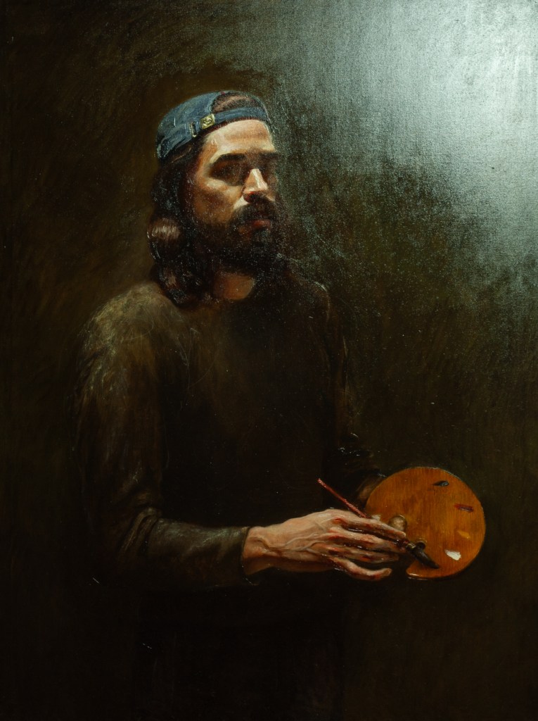 Wayne, Oil on Canvas, 18×24 inchesCharlie Antolin, Chatterjee Family Portrait, Oil on Canvas, 2022Portrait of Ed Antolin, Oil on Panel, 2023Self Portrait With Palette, Oil on Canvas, 2022Self Portrait December 2022, Oil on Canvas, 18×24 inchesCharlie Antolin, David Painting, Oil on Canvas Panel, 2022